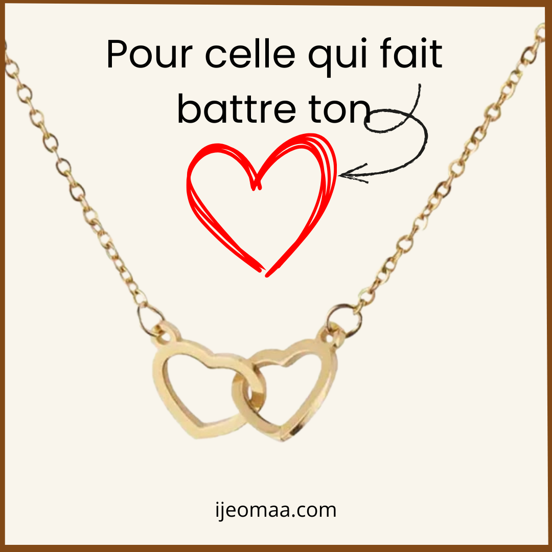 Offrez à celle ou celui qui fait battre votre coeur, ce collier double cœur, symbole d’amour renouvelé. Bijou idéal pour la Saint‑Valentin, livré avec une élégante boîte cadeau offerte.